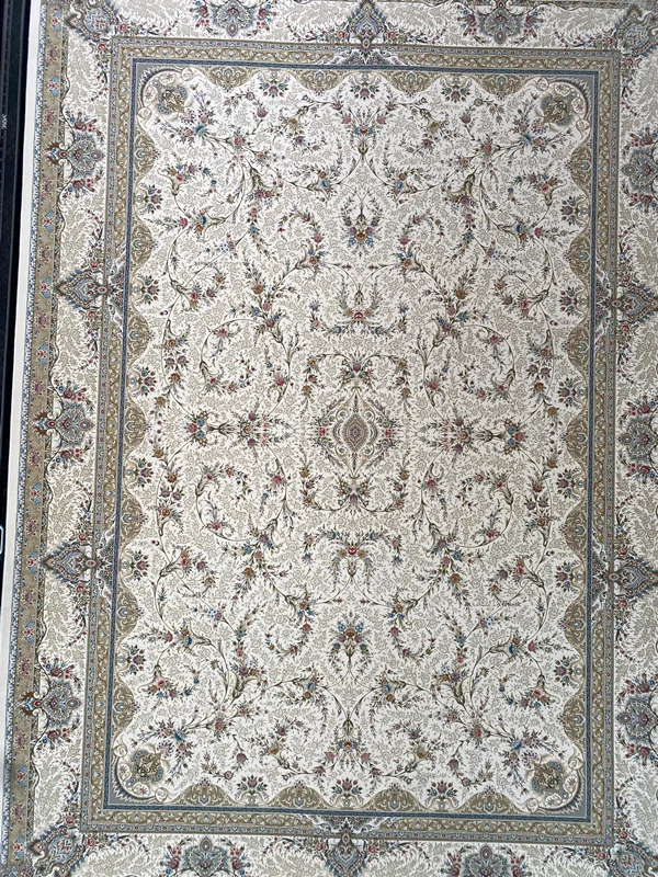فرش ماشینی 1500 شانه اصل تراکم 4500 برجسته، اورجینال 10 رنگ، نقشه کد 8803 ، صددرصد نخ ترک با ۶۰ ماه ضمانت کیفیت و ضمانت مرجوعی کیفیت، بسیار باکیفیت، بافت با رنگ های متنوع زمینه، نقره ای - دلفینی - کرم - سرمه ای ، ارسال رایگان تا باربری شهر مقصد