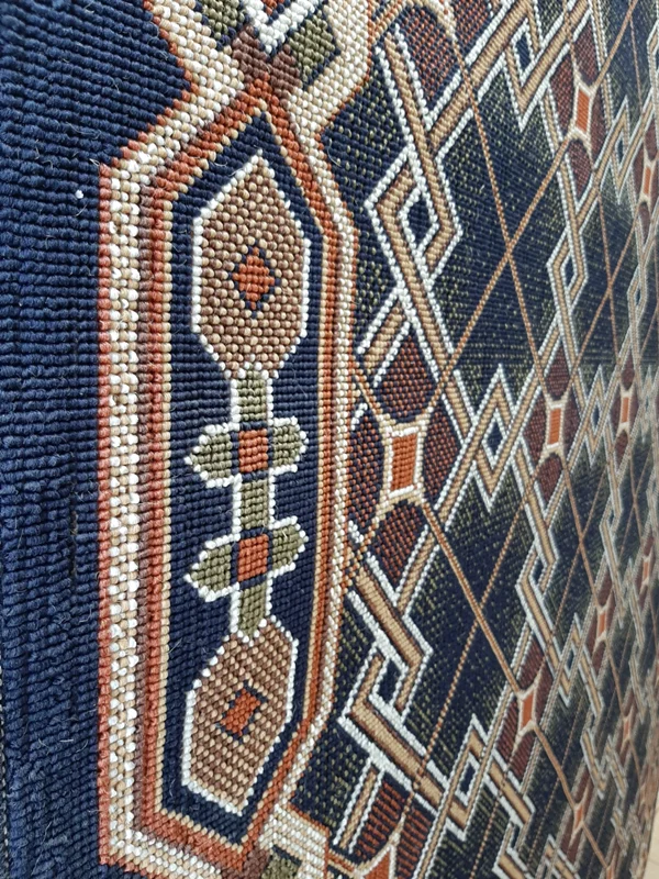 گلیم ۳۲۰ شانه مناسب آشپزخانه و پاگرد سایز ۱/۵ در ۲/۲۵ متری مستطیلی رنگ سورمه ای باکیفیت بالا، ارسال پس کرایه